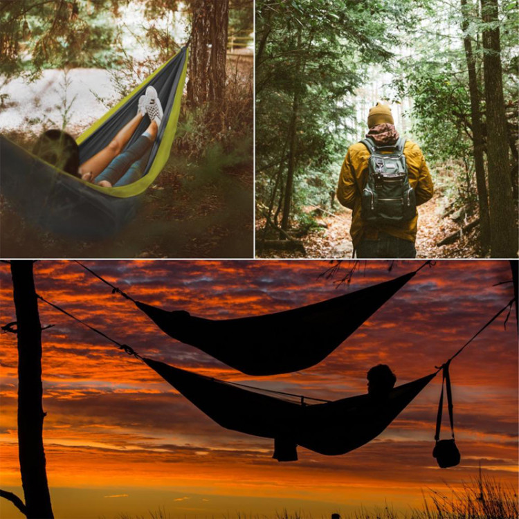 Bộ sản phẩm võng dù dành cho dân phượt BSONWAY 300x200cm bao gồm : 1 túi đựng & 1 võng phượt làm bằng chất liệu vải dù + dây treo + móc. Dây đeo ko co dãn chất liệu chống ăn mòn do ma sát, chịu tải 300kg, trang bị với 36 điểm neo (mỗi đầu 18 điểm).