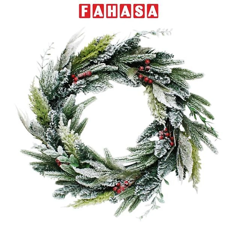 Vòng Hoa 5 Loại Lá Phủ Tuyết Trang Trí Giáng Sinh 60 cm - Chaang Chiia LP-W1-HS