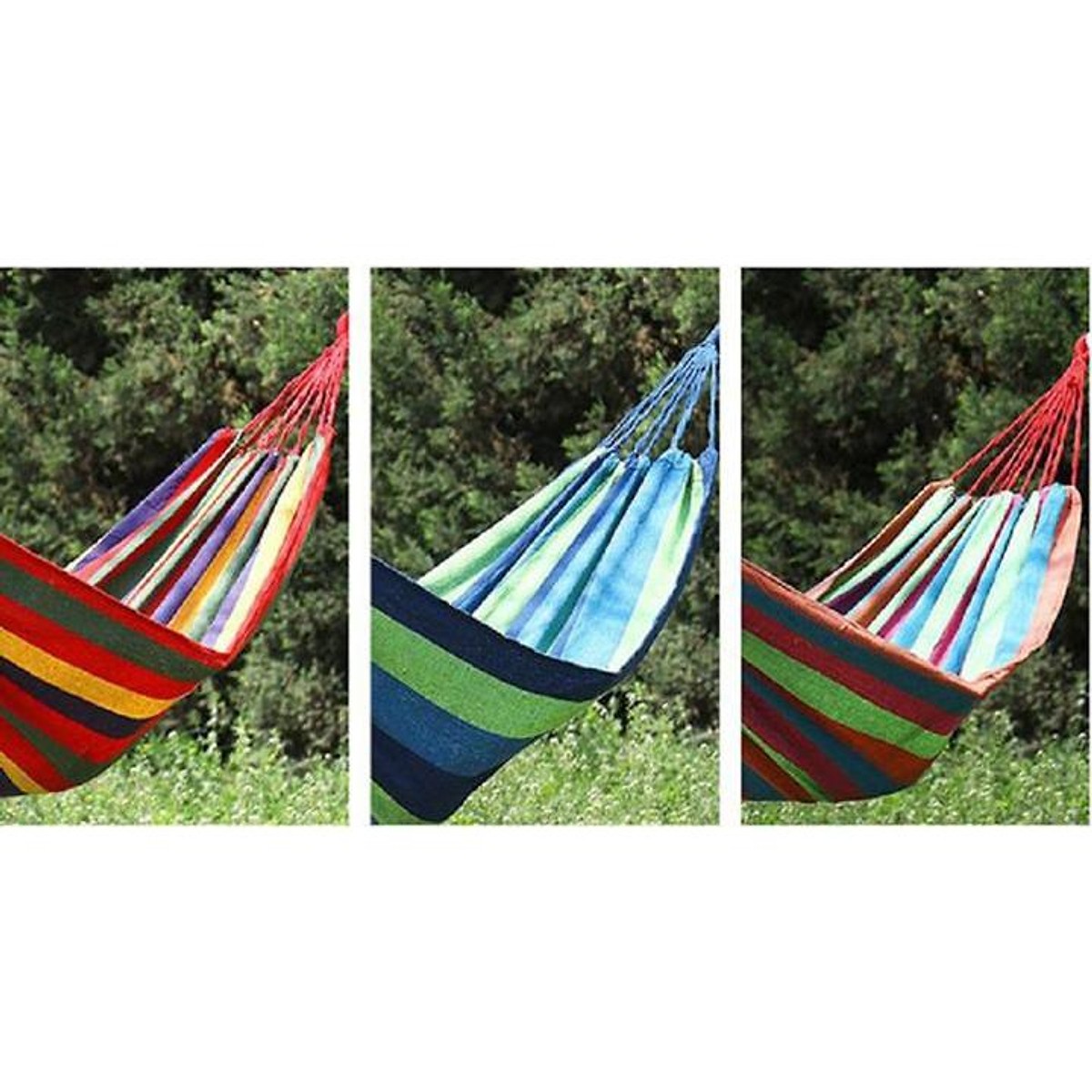– Võng du lịch được thiết kế dáng cầu vồng, 2 đầu dây chắc chắn cùng dây dù đi kèm. Có thể buộc ở bất cứ đâu có cây, cọc…