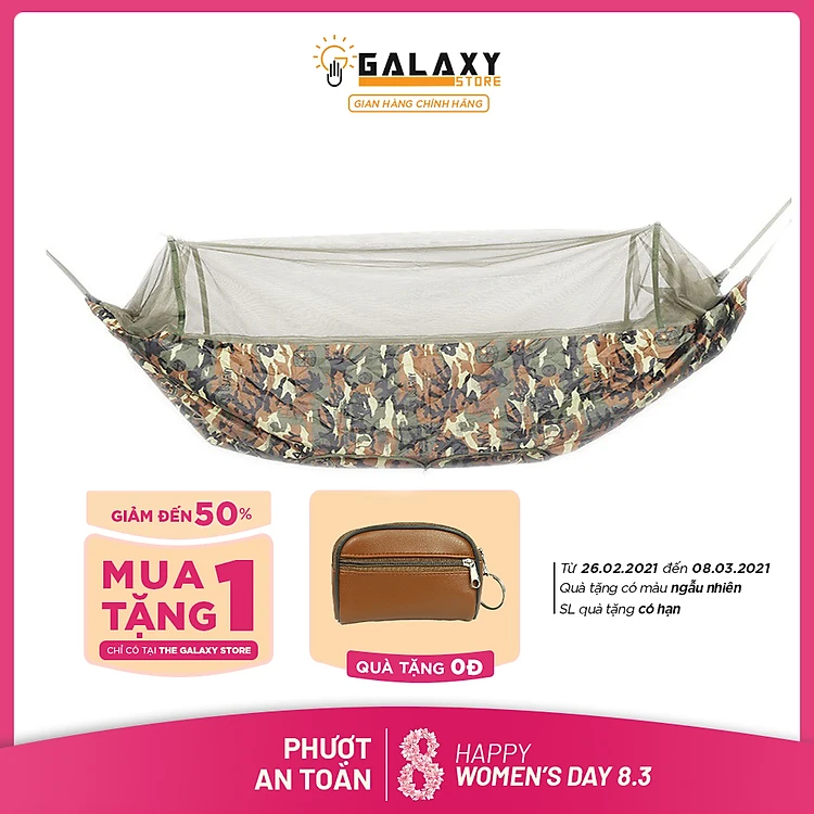 Võng Mùng Cao Cấp Galaxy Sport Dài 2m5 Ngủ Trong Nhà Phượt Du Lịch (Hàng Xuất Khẩu) được thiết kế đặc biệt, võng kết hợp với mùng, bảo vệ bạn khỏi bị muỗi và côn trùng khác đốt, bạn có thể yên tâm sử dụng để ngủ mà không lo bị quấy rầy. Thiết kế gọn nhẹ, võng có thể xếp lại gọn gàng, cho vào trong túi nhỏ, thuận tiện mang theo khi đi du lịch, dã ngoại, picnic,… Sản phẩm gia công xuất khẩu Châu Âu và Mỹ từ xưởng, không qua trung gian, bảo hành đổi trả dễ dàng.