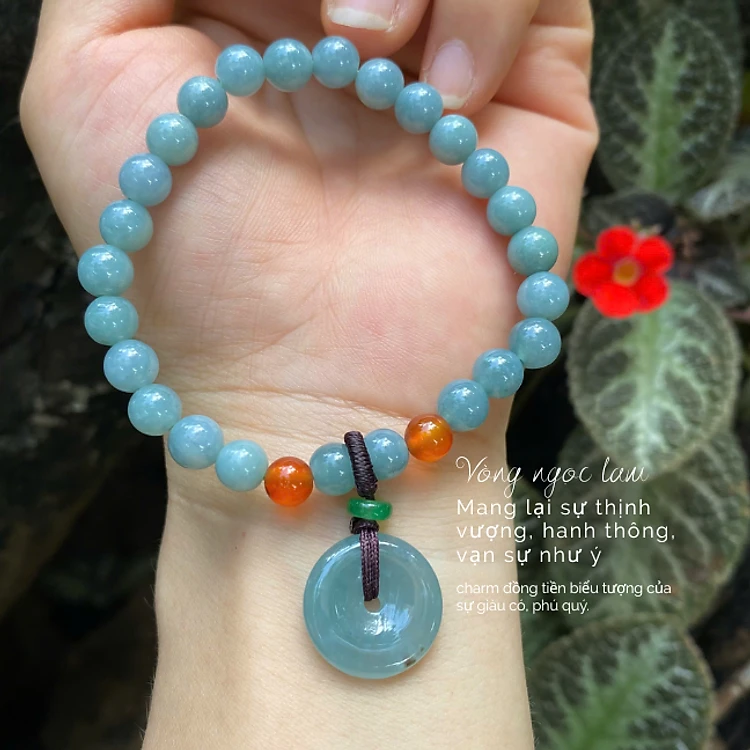 Vòng ngọc lam 7ly-8ly-10ly mix hoa mẫu đơn, điếu, hoa mai phú quý NHASAN (tặng kèm viên thạch anh thô)