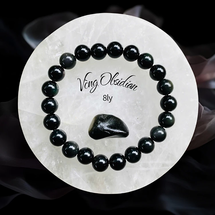 Vòng Obsidian 8mm, 10mm, 12mm, 14mm, 16mm NHASAN Vòng phong thủy trừ tà, hộ mệnh, vòng tay đá núi lửa tự nhiên