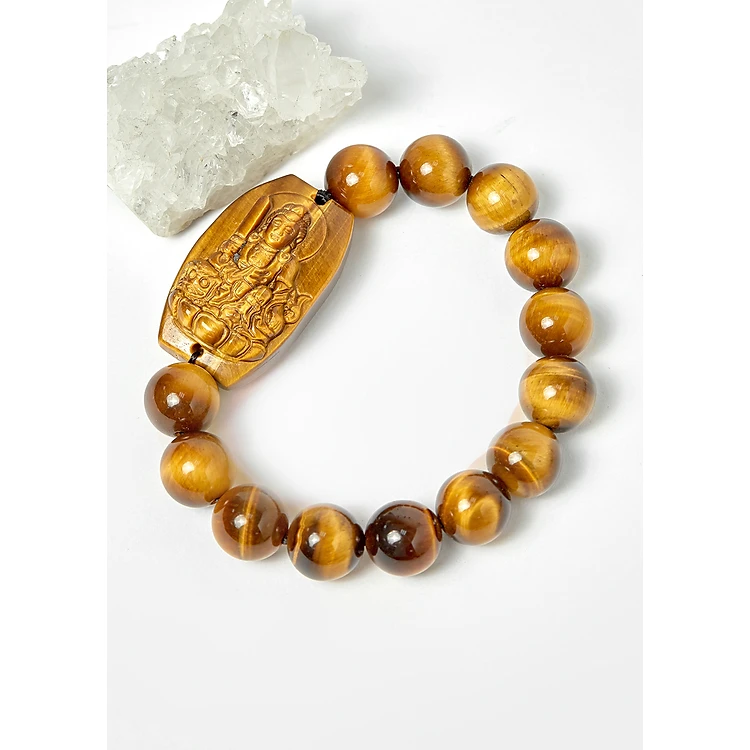 Vòng phật bản mệnh tuổi mão văn thù bồ tát thạch anh mắt hổ hạt 12mm mệnh thổ, kim - Ngọc Quý Gemstones
