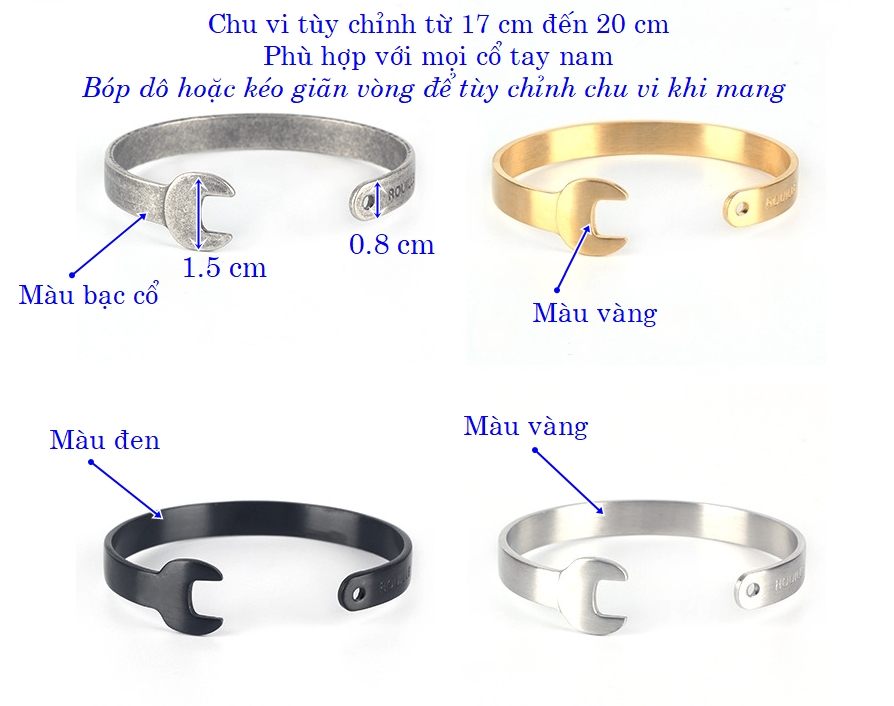 Chu vi vòng: tùy chỉnh chu vi lớn nhỏ từ 17 cm đến 20 cm (phù hợp với mọi cổ tay bạn nam)