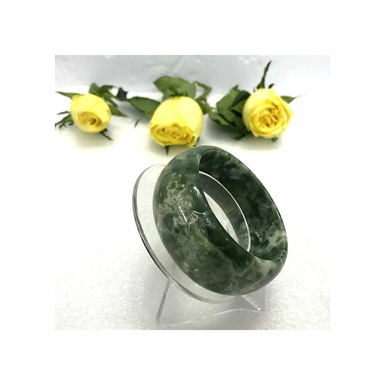 Những chiếc vòng ngọc này còn gọi là đá cẩm thạch, đá ngọc serpentine được chọn tỉ mỉ từ những tảng đá tự nhiên nguyên khối. Không phải tảng đá nào cũng có chất ngọc trong vắt bên trong (màu trong thấu đèn nằm trong đá gọi là ngọc) Chất này được cưa cắt từ tảng đá và chế tác thủ công thành trang sức. Nên nó có năng lượng dương rất tích cực, Mang đá bên mình để “ nhân hữu thạch tất khang” ( Người có đá tất sẽ khỏe mạnh). Vì vậy nó có lợi cho sức khỏe