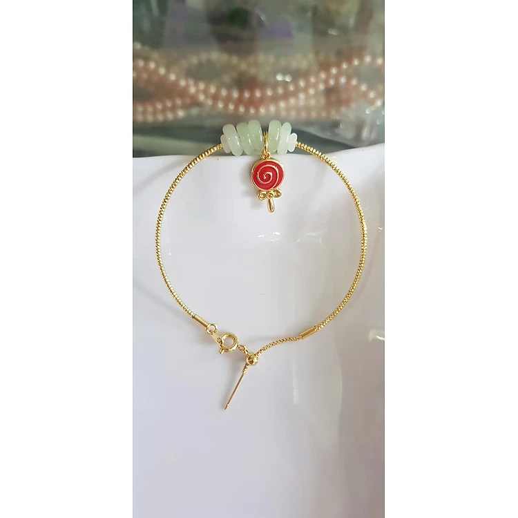 Vòng Tay charm xinh đẹp 5 đồng tiền đá cẩm thạch tự nhiên Đồng tiền Trắng Xanh nhẹ phối charm đỏ kiểu tròn may mắnVòng màu vàng khoen rút xinh Nữ đeo dễ thương ạ