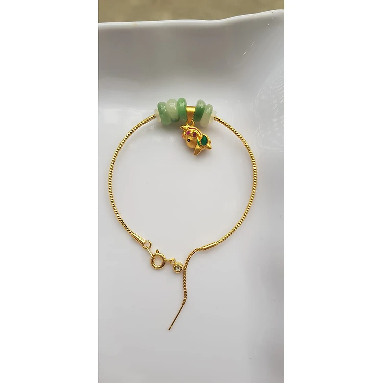 Vòng Tay charm xinh đẹp 5 đồng tiền đá cẩm thạch tự nhiên Đồng tiền Xanh ngọc trắng phối charm chú dê nhỏ may mắn Vòng màu vàng khoen rút xinh Nữ đeo dễ thương ạ