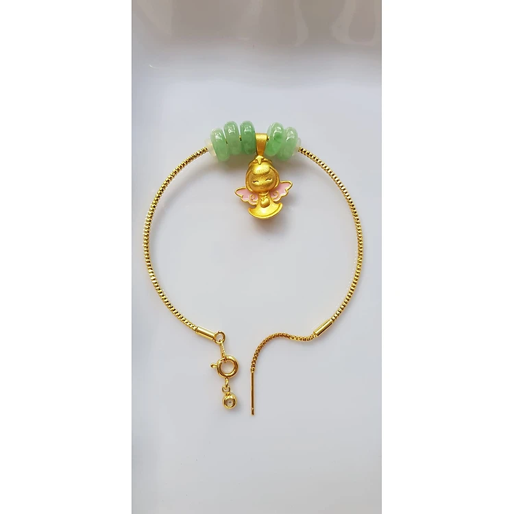 Vòng Tay charm xinh đẹp 5 đồng tiền đá cẩm thạch tự nhiên Vòng phối charm hình bé thiên thần vòng màu vàng khoen rút xinh Nữ đeo dễ thương ạ