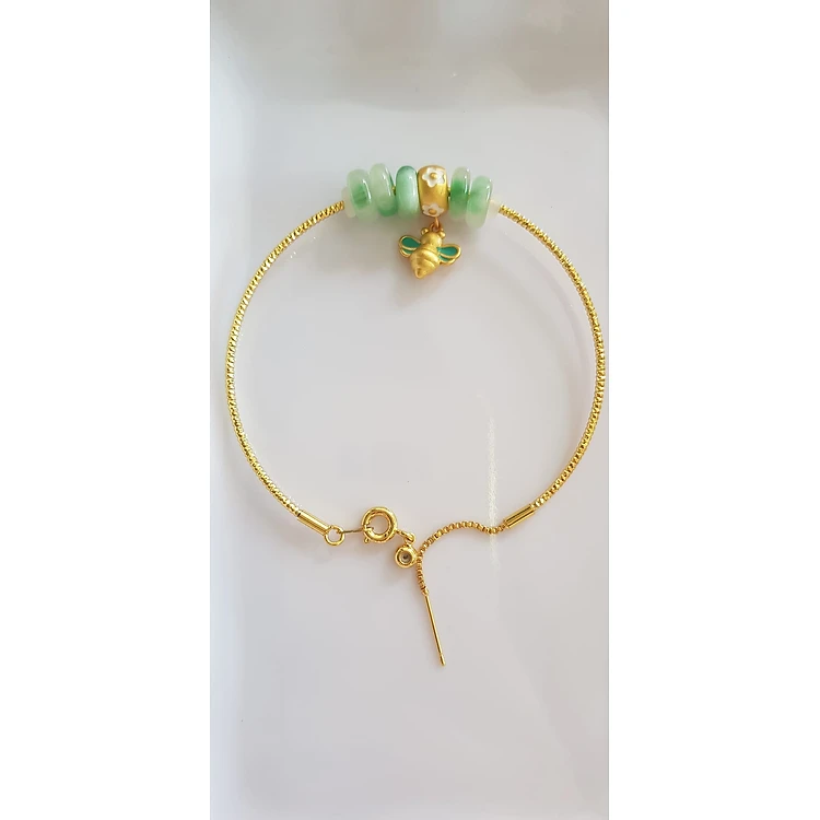 Vòng Tay charm xinh đẹp 5 đồng tiền đá cẩm thạch tự nhiên Vòng tay phối charm hình Chú Ong Xinh xắn vòng màu vàng khoen rút xinh Nữ đeo dễ thương ạ
