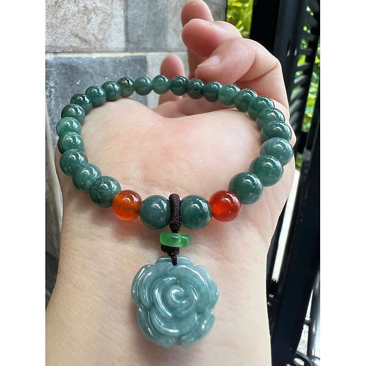 Vòng Tay Chuỗi Nữ Đá Cẩm Thạch Xanh Lam Đậm Tự Nhiên Mix Bông Hồng rất là xinh đẹp size hạt 7mm các chị em nữ mệnh thủy mệnh mộc mệnh và hỏa đeo chuẩn hợp món quà tặng phụ nữ quà sinh nhật đẹp ý nghĩa rẻ đẹp ạ