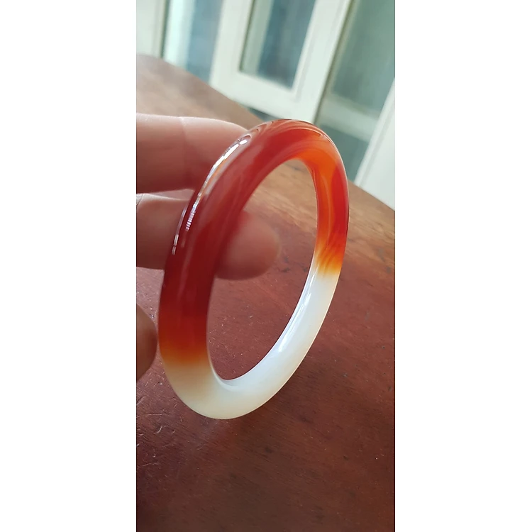 Vòng tay đá mã não rẻ đẹp Đỏ đậm đẹp 1 bên trắng 1 bên Vòng Ni 60mm x chột to 10mm Nữ 60kg - 75kg đeo rất xinh tay ạ