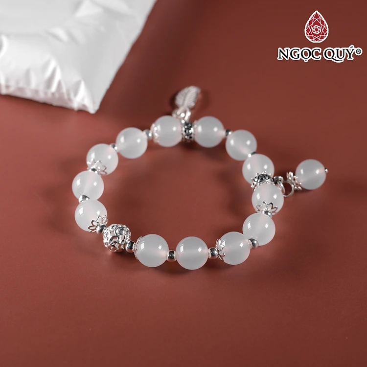 Vòng tay đá mã não trắng mix charm bạc hạt 8mm mệnh thủy kim - Ngọc Quý Gemstones