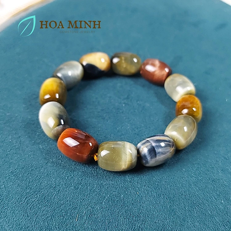 Vòng tay đá Mắt Hổ tam tài VIP thiên nhiên kiểu lu thống size 12x16mm phong thủy tài lộc