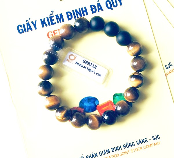 Vòng tay đá mắt hổ thiên nhiên, hợp phong thủy nam nữ, kèm bản Photocopy Giấy kiểm định SP mẫu + Túi nhung cung hỷ