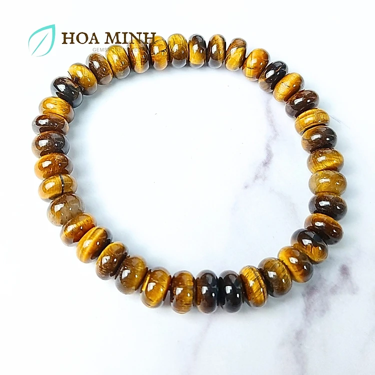 Vòng tay đá Mắt Hổ vàng nâu kiểu bánh xe size 8 li phong thủy tài lộc may mắn