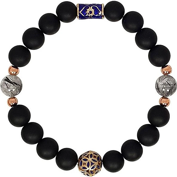 Vòng Tay Đá Nham Thạch Mix Thạch Anh Tóc Đen Mệnh Thủy Charm Quả Cầu Xanh Laliz NR.02
