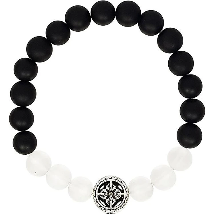 Vòng Tay Đá Nham Thạch Mix Thạch Anh Trắng Mệnh Thủy Charm Hoa Tuyết Laliz NR.01