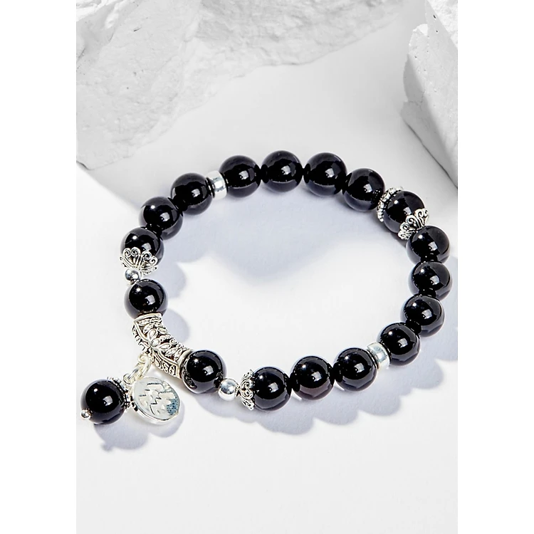 Vòng Tay Đá Obsidian Phối Charm Cung Hoàng Đạo Size Hạt 8mm Mệnh Thủy, Mộc Ngọc Quý Gemstones