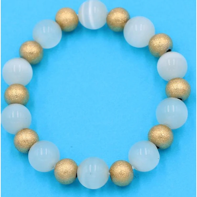Vòng tay đá phong thủy - đá mắt mèo trắng 10 ly VMETHVT1 - hợp mệnh Kim, Thủy
