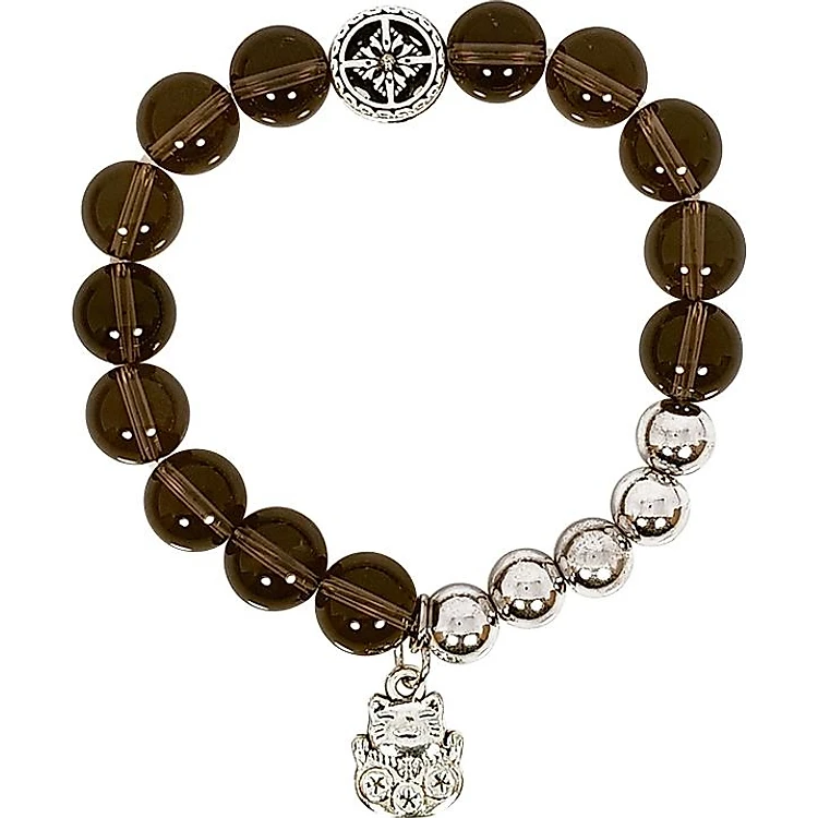 Vòng Tay Đá Thạch Anh Ám Khói Mệnh Thủy Charm Mèo May Mắn, Hoa Tuyết Laliz TR.03