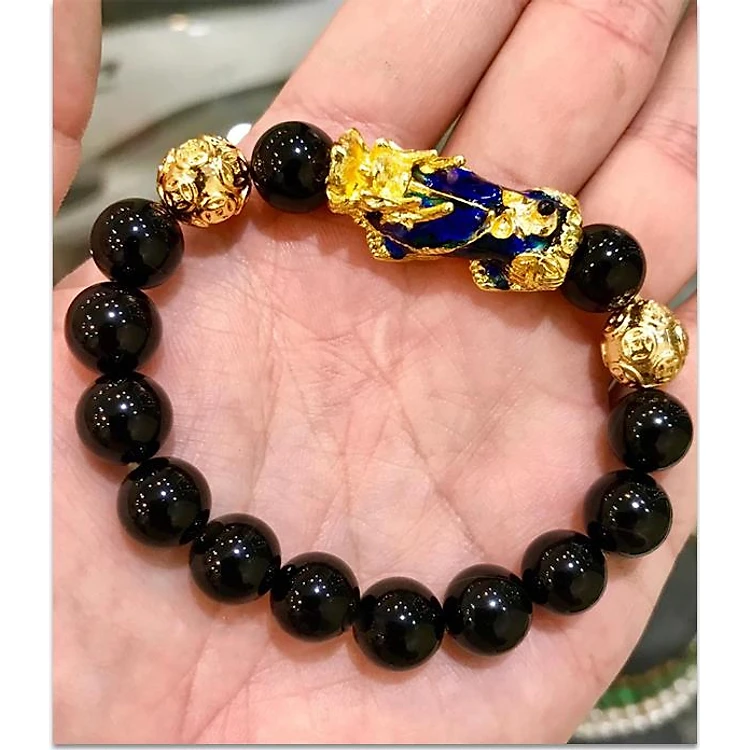 Vòng tay đá thạch anh đen mix Tỳ hưu đổi màu và hạt kim tiền MU340, Vòng tay phong thủy hợp mệnh Thủy, Mộc, Thổ
