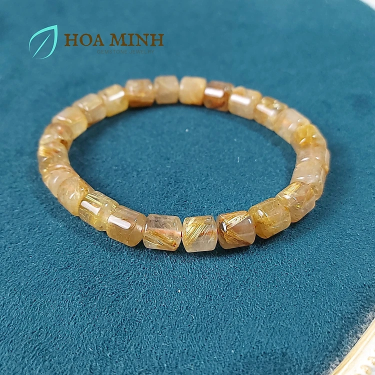 Vòng tay đá Thạch Anh Tóc Vàng tự nhiên VVIP kiểu lu thống size 7.5x8 li phong cách đẳng cấp, sang trọng