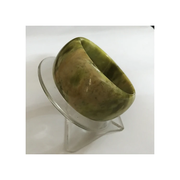 Những chiếc vòng ngọc này còn gọi là đá cẩm thạch, đá ngọc serpentine được chọn tỉ mỉ từ những tảng đá tự nhiên nguyên khối. Không phải tảng đá nào cũng có chất ngọc trong vắt bên trong (màu trong thấu đèn nằm trong đá gọi là ngọc) Chất này được cưa cắt từ tảng đá và chế tác thủ công thành trang sức. Nên nó có năng lượng dương rất tích cực, Mang đá bên mình để “ nhân hữu thạch tất khang” ( Người có đá tất sẽ khỏe mạnh). Vì vậy nó có lợi cho sức khỏe