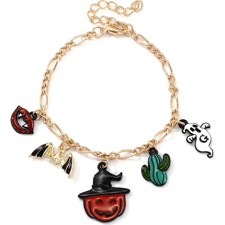 Vòng tay lắc tay Halloween Bí Ngô đỏ Dơi Xương Rồng Ma trắng & Môi đỏ