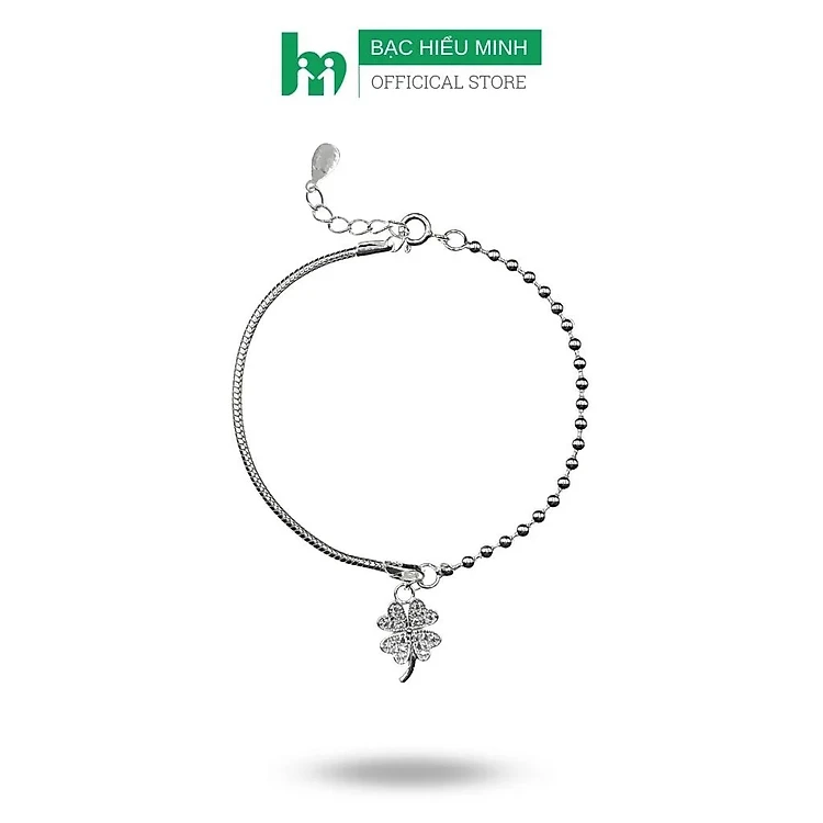 Vòng Tay Lắc Tay Nữ Bạc Ta Dây Mì Bi Cỏ 4 Lá May Mắn Bạc Hiểu Minh LTU575