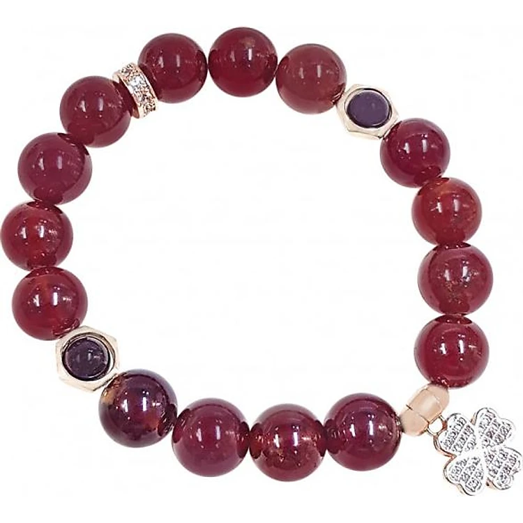 Vòng Tay Laliz Mệnh Hỏa Thổ Đá Ganet Đỏ Mix Charm Hợp Kim Cỏ Bốn Lá Lat.59