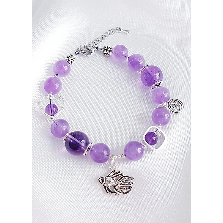 Vòng Tay Laliz Mệnh Hỏa , Thổ Đá Thạch Anh Tím Charm Bạc Con Cá - TAR.22