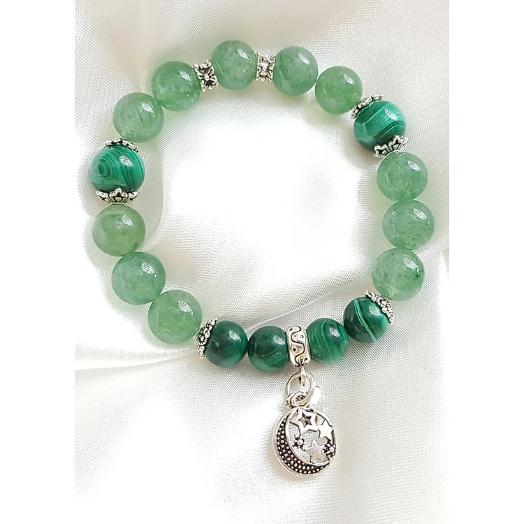 Vòng Tay Laliz Mệnh Mộc, Hỏa Thạch Anh Dâu Kết Hợp Đá Khổng Tước Charm Bạc Trăng Sao - TAR.16