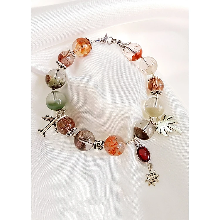 Vòng Tay Laliz Mệnh Thổ, Kim Đá Thạch Anh Ưu Linh Kết Hợp Thạch Anh Tóc Nâu Charm Bạc Đá Garnet - TAR.07
