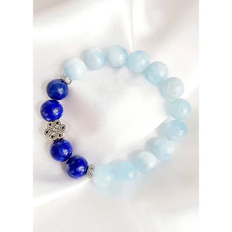 Vòng Tay Laliz Mệnh Thủy , Mộc Đá Aquamarine Phối Đá Lapis Lazuli Charm Vĩnh Kết Đồng Tâm Bạc TAR.24 - TAR.24