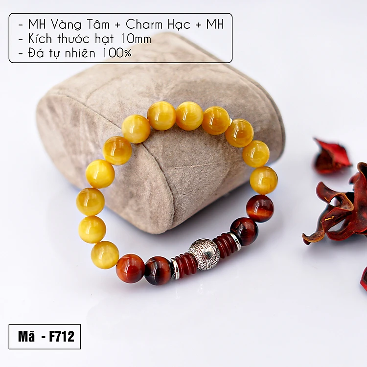 Vòng tay Mắt hổ vàng 10mm + Charm do Anqlo tác chế
