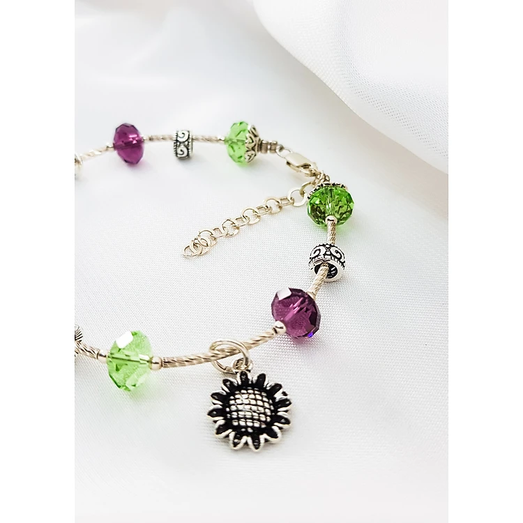 Vòng tay mệnh đá pha lê mix charm hoa hướng dương