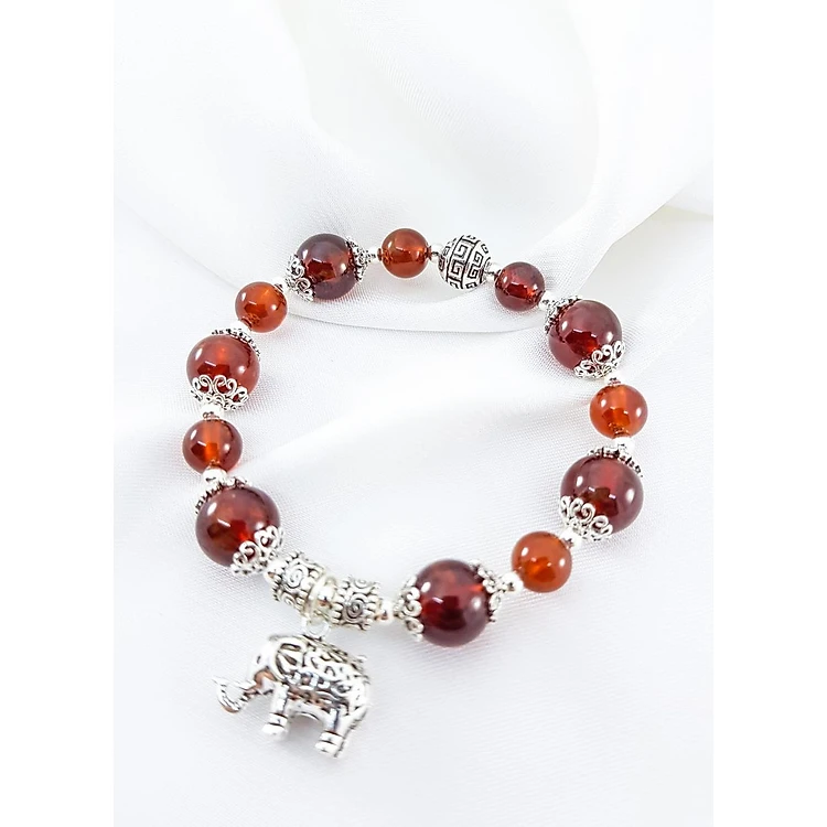 Vòng Tay Mệnh Hỏa, Thổ Đá Garnet Mix Charm Con Voi