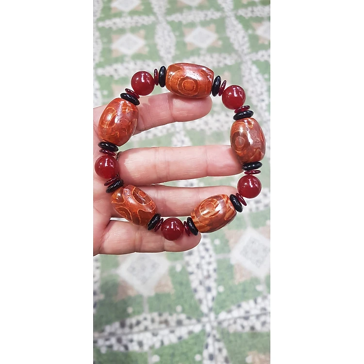 Vòng tay nam mã não tây tạng đỏ kiểu Vòng hạt thống 17mm phối hạt tròn mix đồng tiền đỏ đen vào Nam mệnh hoả mệnh thổ đeo hợp đẹp ạ
