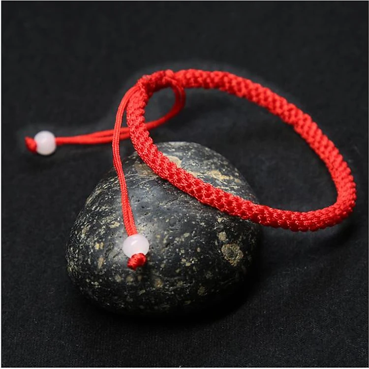 Vòng tay nam nữ bện chỉ đỏ tròn đính 2 hạt ngọc CD19