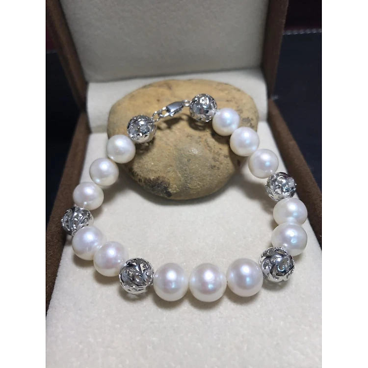 Vòng Tay Ngọc Trai Phối Charm Bạc Thái Cao Cấp
