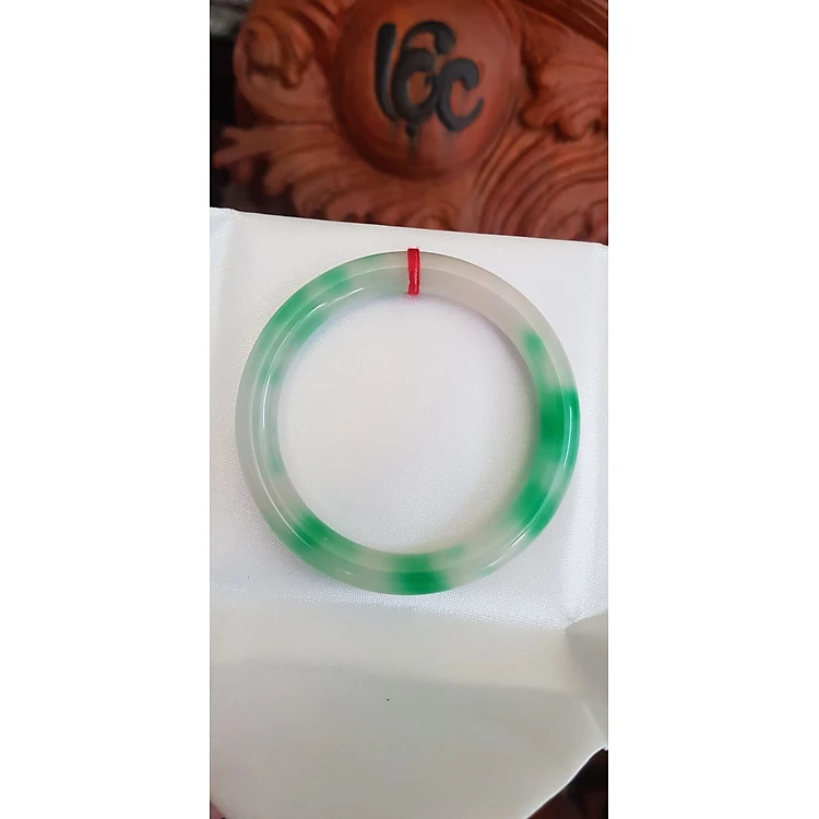 Vòng tay nữ đá Cẩm Thạch tự nhiên mới TR LÝ A Sịn 52mm x chột 8mm Vòng màu trắng vân xanh lý bóng đẹp nữ 50kg - 54kg đeo ạ