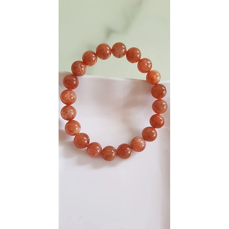Vòng tay nữ đá mặt trời Sunstone Size 10li hay 10mm đẹp quyến rũ sang trọng đem lại sự tự tin Nổi bật bởi tông màu hồng cam nhẹ nhàng lấp lánh của đá mặt trời Sunstone tượng trưng cho thần mặt trời đẹp Đá Sunstone phù hợp với người mệnh Thổ và mệnh Hỏa ạ
