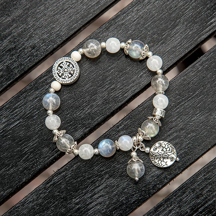 Vòng tay phong thủy BlackMount đá xà cừ mix mặt trăng mix bạc 925 cho mạng Kim Thủy, đá thiên nhiên, bao kiểm định, món quà trang sức phong thủy ý nghĩa may mắn tài lộc.