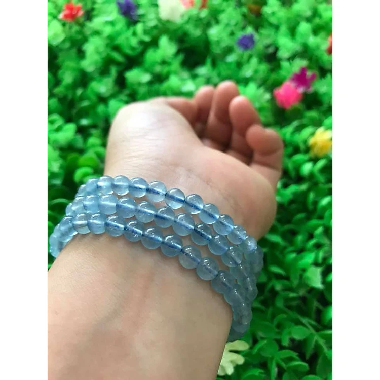 Vòng Tay Phong Thủy Đá Aqua Vip xuất sắc 6mm kiểu quấn tay 3 vòng rất đẹp Vòng màu xanh Aqua Bóng đẹp Rất hợp nữ mệnh thủy mộc hỏa ạ