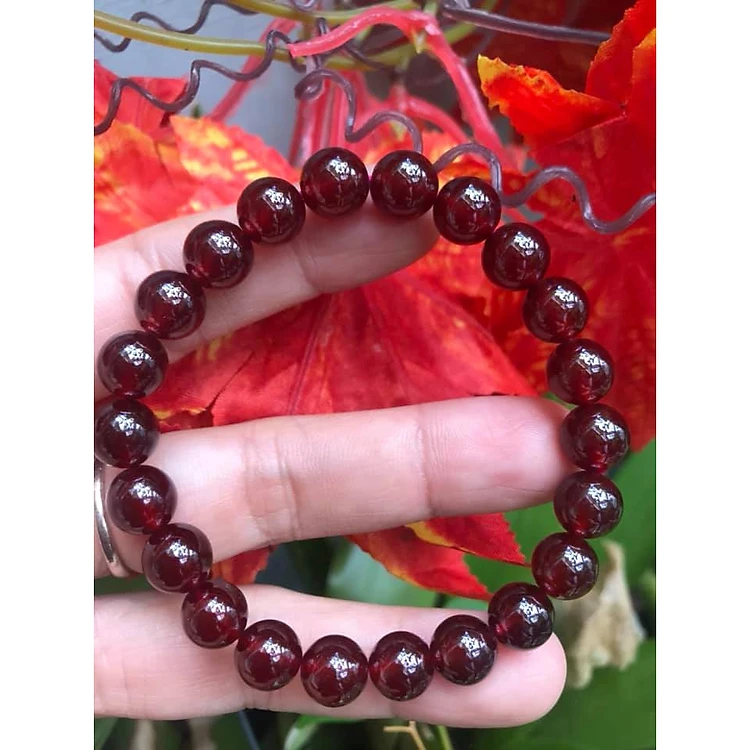 Vòng tay phong thủy đá Granet đỏ cam tự nhiên bóng đẹp sang Size Vòng 9mm Hợp Nữ mệnh Hoả Thổ ạ