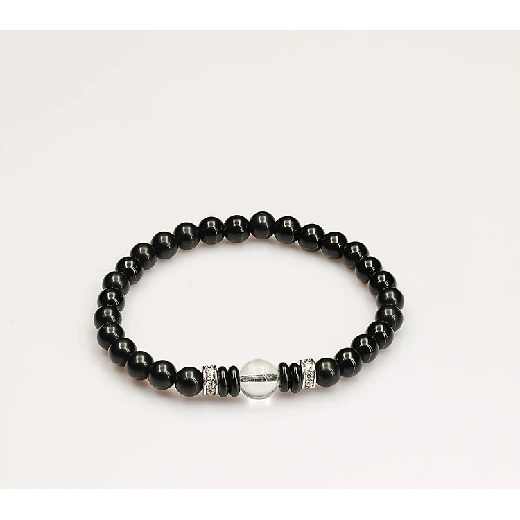 Vòng tay phong thủy đá Mã Não Đen 6 ly mix Thạch Anh Trắng by Anqlo