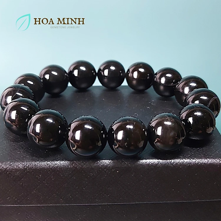 Vòng tay phong thủy đá Mã Não đen onyx 14 li vòng tay cho quý ông lịch lãm, phong cách