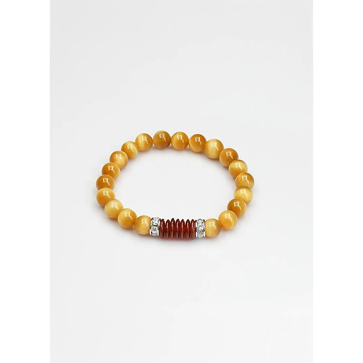 Vòng tay phong thuỷ đá Mắt Hổ Vàng Tâm 8 ly mix Khoen Mã Não by Anqlo