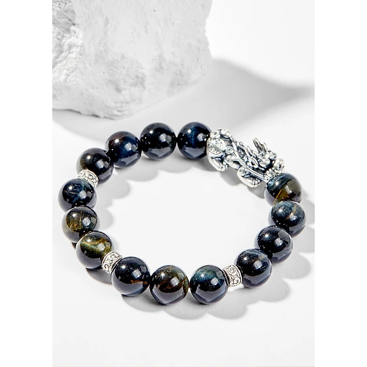 Vòng Tay Phong Thủy Đá Mắt Hổ Xanh Đen Phối Charm Tỳ Hưu Bạc (10mm) Mệnh Thủy, Mộc Ngọc Quý Gemstones