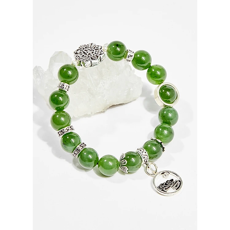 Vòng tay phong thủy đá ngọc bích charm hoa 10mm mệnh hỏa , mộc - Ngọc Quý Gemstones